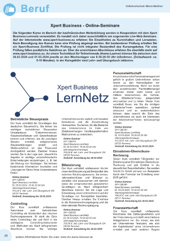 Steuererklärungen erstellt und Xpert Business LernNetz UE/20 Termine)