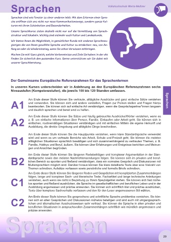 In unseren Kursen unterscheiden wir in Anlehnung an den Europäischen Referenzrahmen sechs