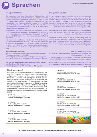 Die Volkshochschule bietet interessierten Mitbürger*innen mit Our vhs offers German courses for people with a migrational