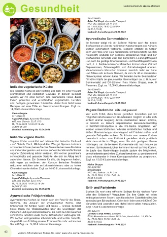 und Beilagen gemeinsam zubereiten. Jeder Kurs bietet neue Verbindl. Anmeldung bis 29.05.2024