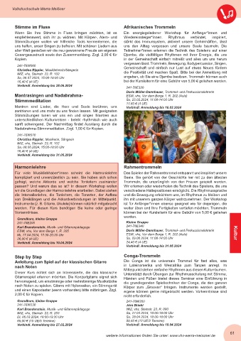 Gesangsausdruck sowie den Zusammenklang. Zzgl. 2,00 € für Djembe, die vielfältigen Rhythmen mit ihrer Energie, die uns