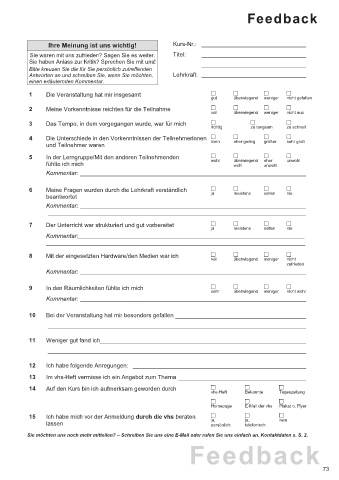 Ihre Meinung ist uns wichtig!               Kurs-Nr.: ________________________________