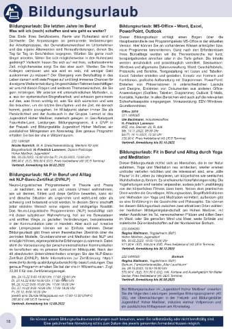 Bildungsurlaub: NLP in Beruf und Alltag Pause“ in ihr Leben zu integrieren, um körperliches wie seelisches