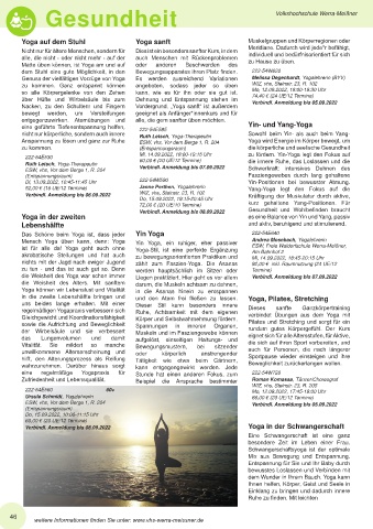 Ursula Schmidt, Yogalehrerin 66,00 € (20 UE/12 Termine)