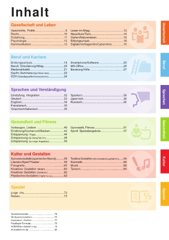 Ernährung/Kochen und Backen..................42 Sportl. Spezialangebote.............................57 Gesundheit