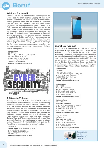 Schwerpunkte dieses Workshops sind die PC-Sicherheit und Fortgeschrittene