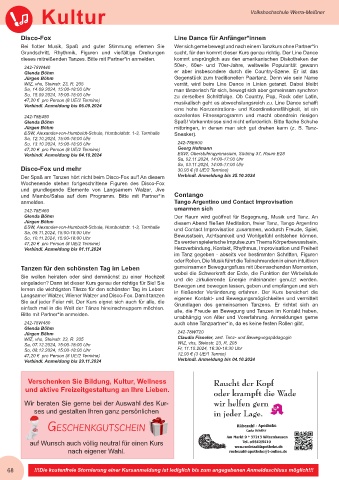 47,20 € pro Person (8 UE/2 Termine) musikalisch geht es abwechslungsreich zu. Line Dance schafft
